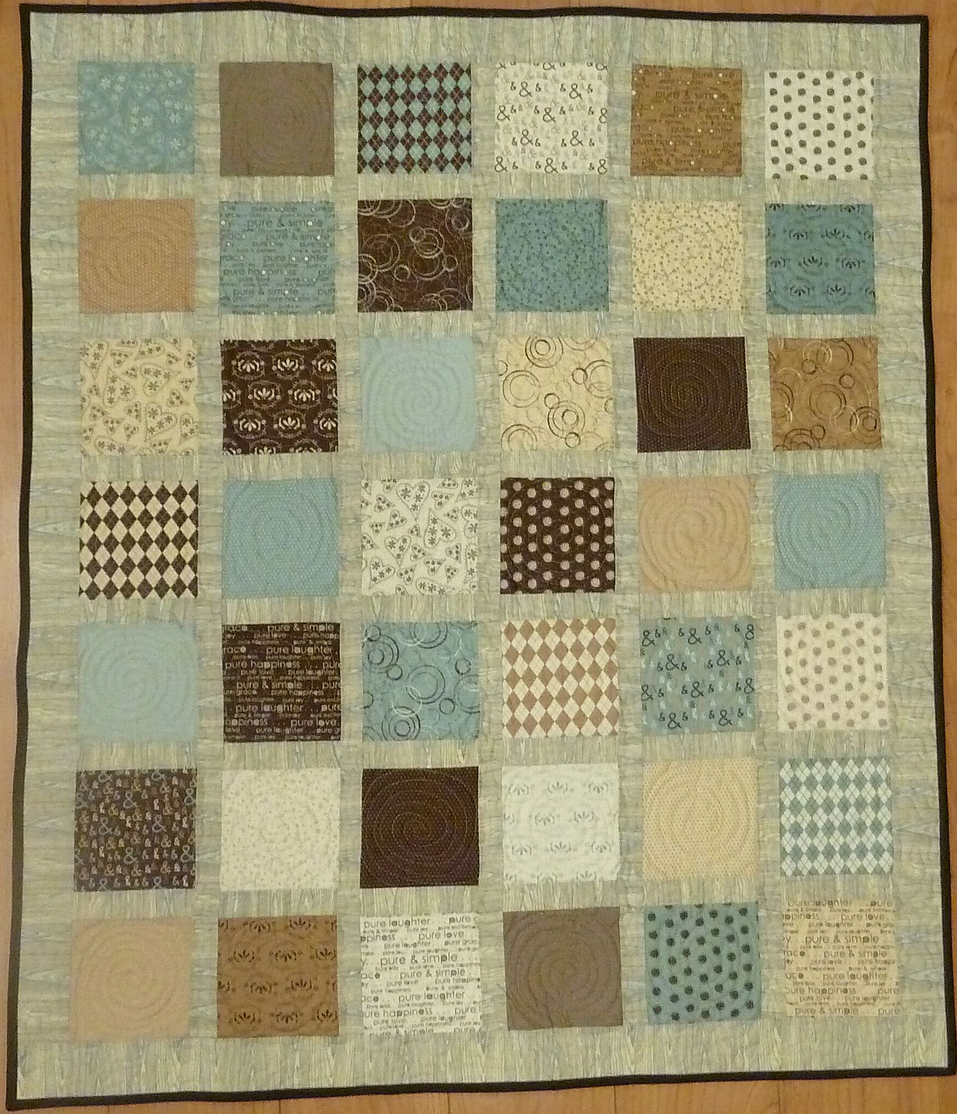 One bundle of charms I’ve been using a lot of is from the “Pure” collection by Moda. I took three charm packs and made three different quilts from them, to see how the same fabric could be used in different ways.