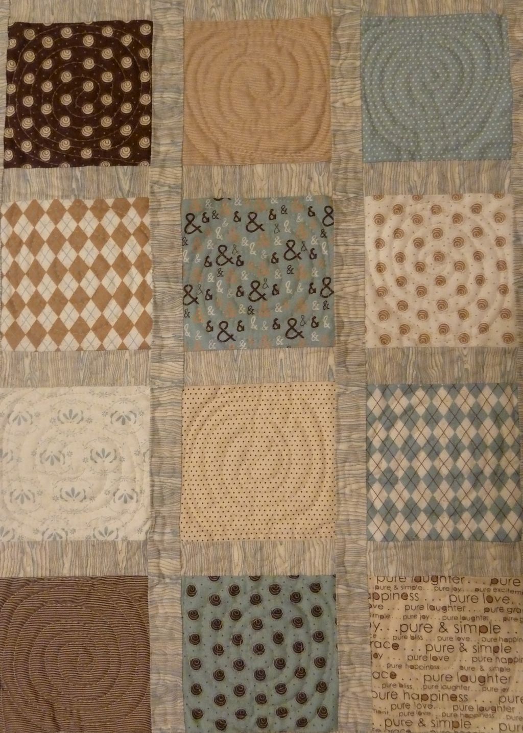 Here’s a closeup of the free-motion machine quilting. I wanted to try a free-motion spiral design. They aren’t all exactly perfect, but it made for fun practice!