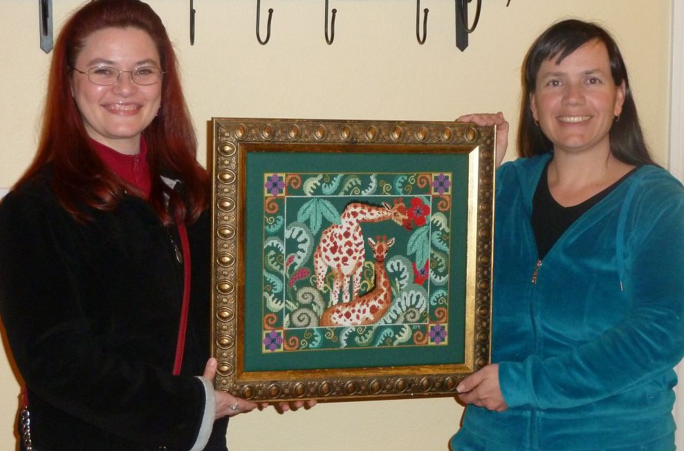 I love having crafty friends! My very dear friend Janice (the one whom I shared pastries with yesterday) made me this beautiful cross-stitched picture. It is perfect for my kids’ jungle themed bathroom. She painstakingly formed each stitch by hand with multiple thread variations and intricate shading. Her handy hubby made the decorative frame.