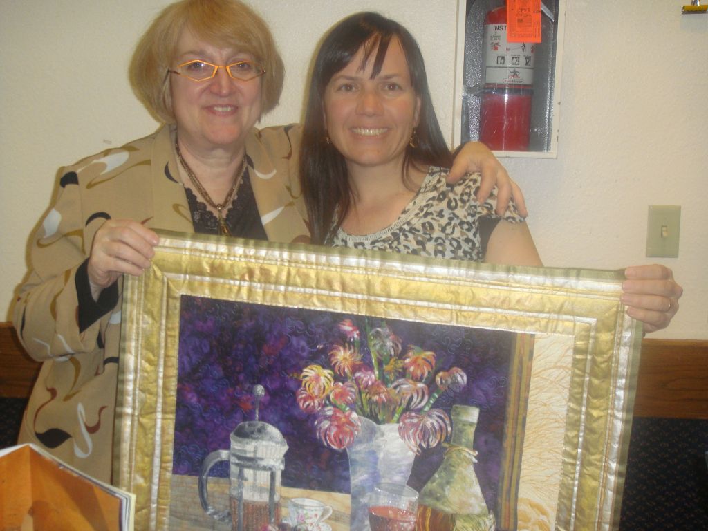 I don’t know which I liked better – listening to her presentation, or viewing her quilts. She was a very entertaining speaker and her quilts were some of the best I’ve ever seen. With her permission, here are a couple of photos of quilts she showed us at the meeting: