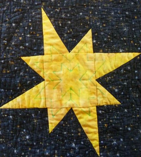 Finally, I added the quilting using glow in the dark thread. Too bad I can’t take pictures in the dark! It turned out really cool.