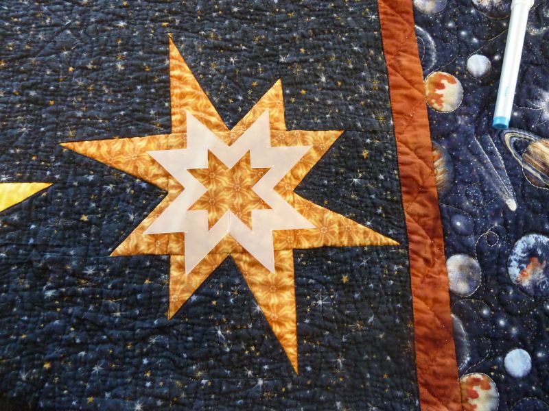 Here are some photos I took making a quilt stencil and adding the stitching.