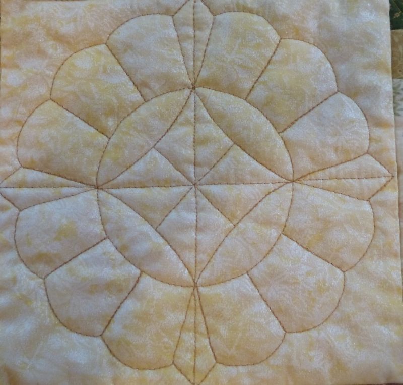 Finally, the two blocks are quilted how I like them – lots of detail with designs to fill the space. Quilting really does make a difference. Now, on to the next quilt!