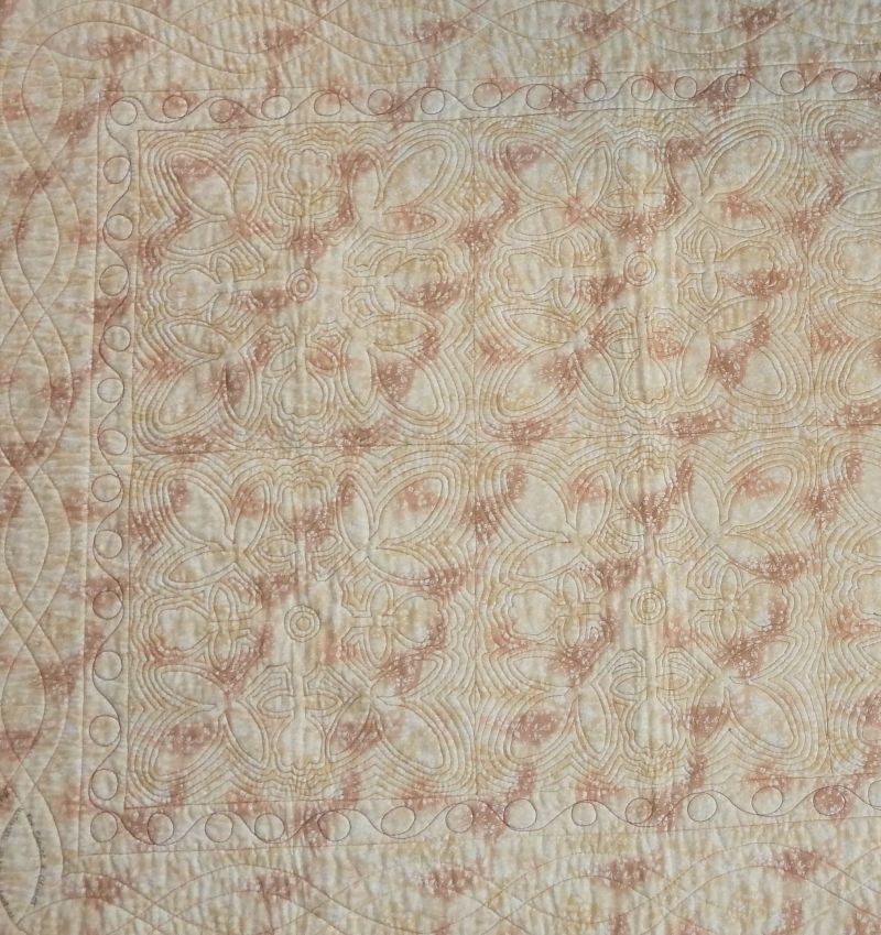 Here’s a few detail pictures of some of the work (the great reveal of all 5 quilts will be on Saturday, once they are displayed in public). This is the back showing how much quilting went into this applique quilt!