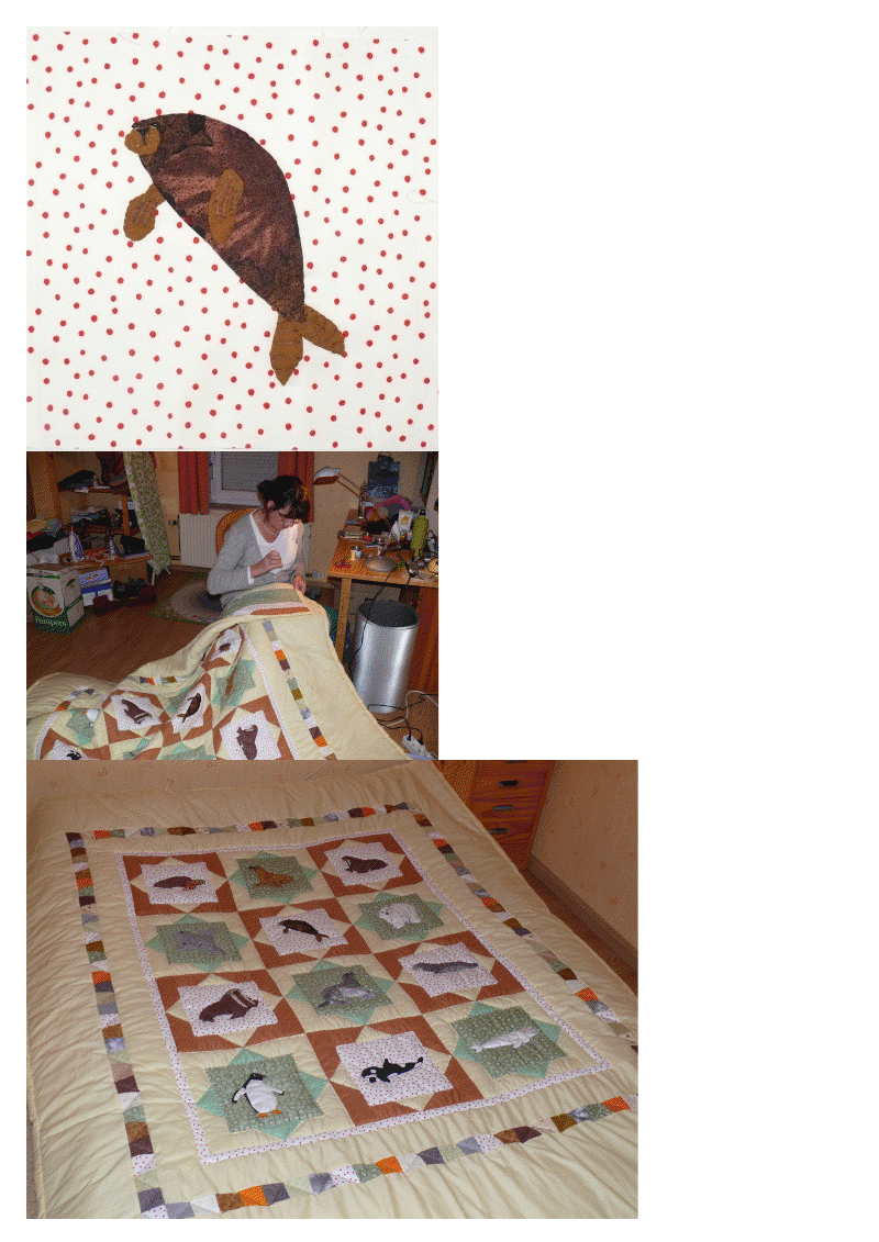 And finally, she put the finishing touches on a beautifully appliqued marine animals quilt. Such creativity! I love it when my customers send me pictures of their finished work. It’s “sew’ fun to share!