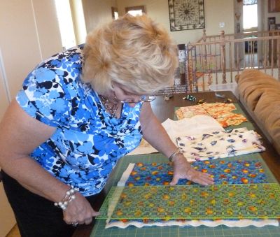 Then it was my mom’s turn to take the quilted piece of novelty material..