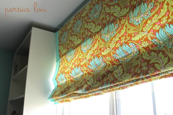 I have such talented friends! And I love it when they let me share pictures of what they’ve made using my fabrics. My friend Alexis recently made a Roman shade from some Amy Butler fabric: Temple Tulips in the Cinnamon color from the Soul Blossoms collection.