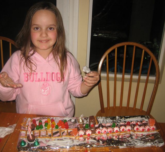 The younger kids and cousins made candy Christmas trains while Jason Sr. and Jr. battled each other on their favorite computer game. Ryan was off in the distance, admiring his new collectible card games. My favorite gift was a set of warm fleece pants & top, gloves and a scarf. I just love to be comfy-cozy!