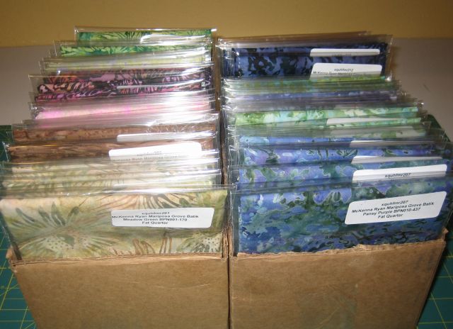 To protect and organize the fat quarters, we bagged each one individually. Now they are ready to pop into the mail for the next customer who wants them. Don’t they look yummy?