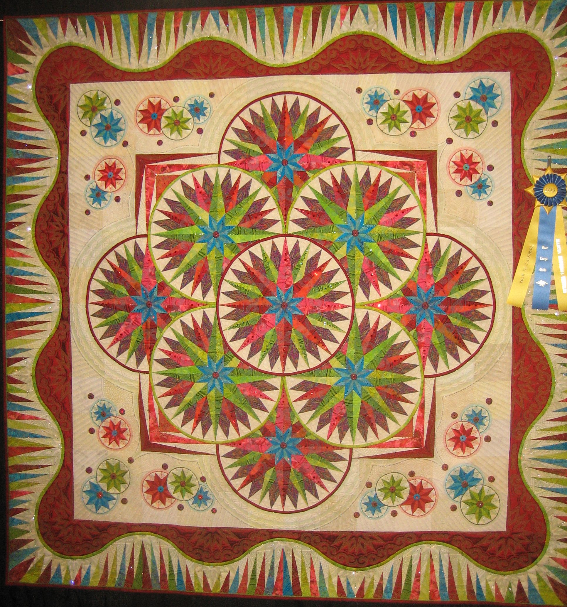 This quilt is an absolute Super Star as it’s name implies. Made by Marilyn Badger of St. George, Utah it contains lots of sparkling crystals that are hard to see in the photo.