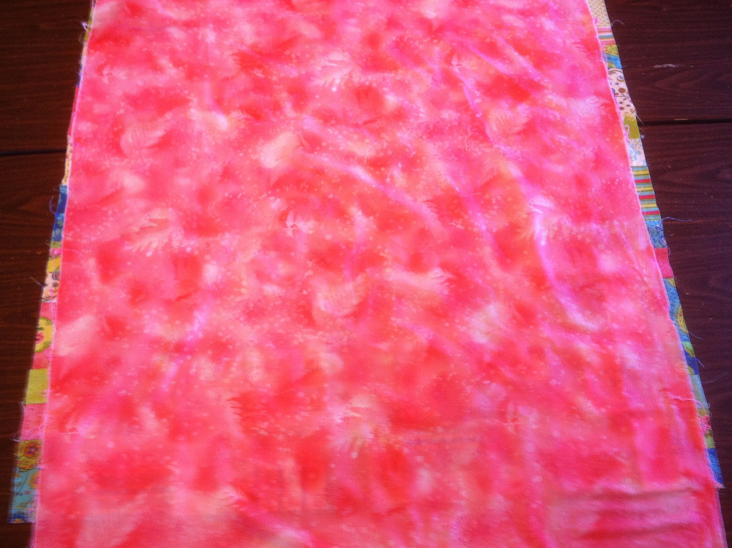 Now the backing is large enough and I will use the excess pink fabric for the binding.