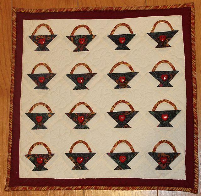 This mini quilt was the very first thing I ever entered, way back in 1997 – can you believe it? It was for a guild challenge and all that I remember was that we were supposed to use a a basket, a heart, and a flower.