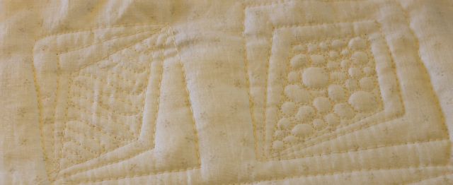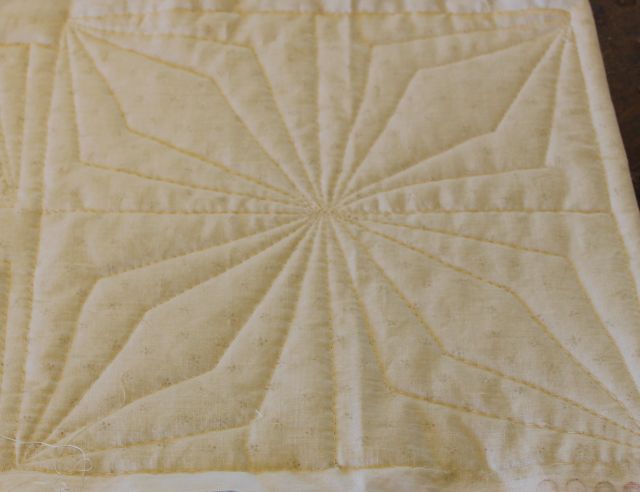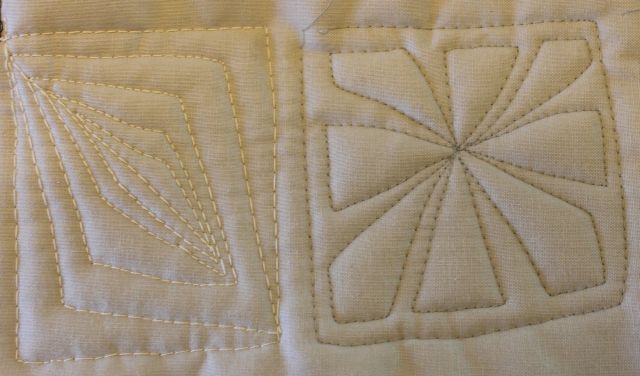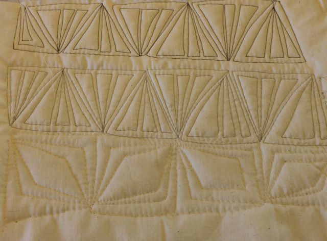 After watching the first couple of lessons, I quickly quilted up these little diamond and starburst sample motifs, just to get the hang of it.