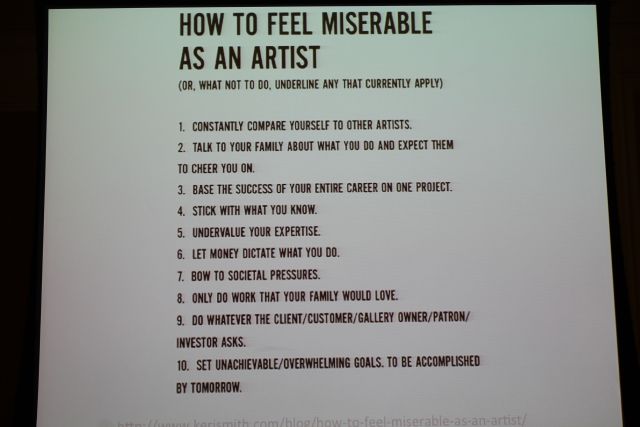 Very nice recap. Christa, your blog has always had great information and you should go for it!! I can relate to the “how to feel miserable as an artist” slide – there is more than one I could underline. Thanks for sharing 🙂