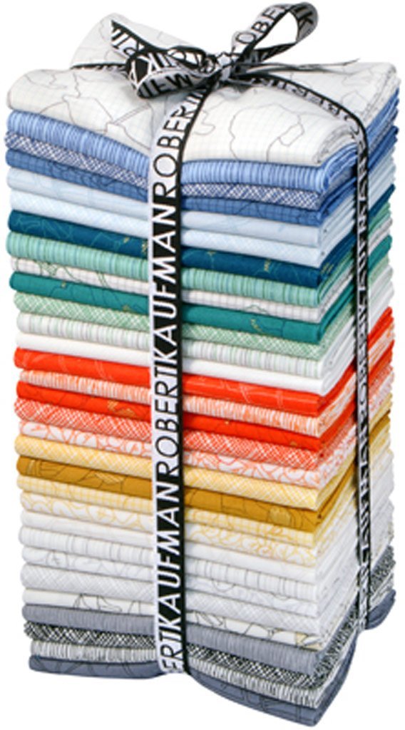 Botanics precuts are available as 31 piece fat quater bundles, 42 square layer cakes, and 40 strip roll ups (Kaufman’s version of jelly rolls). Aren’t they lovely? And just itching for the right project, too! I love it when a collection includes both rich colorful focus prints and soft background (low-volume) colors.