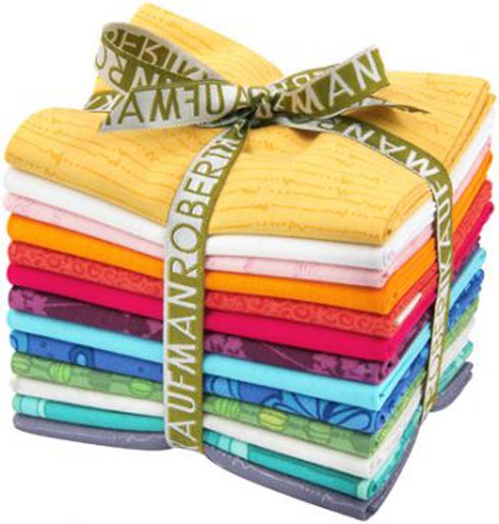 Shimmer includes a beautiful assortment of neutrals with just a hint of sparkle. Modern geometrics are always a favorite of mine! The precut line includes a 25 piece fat quarter bundle (one of every fabric from the line), a regular size roll up (4o – 2 1/2″ strips), and precut 10″ squares. I just checked my inventory and these guys are selling out fast!