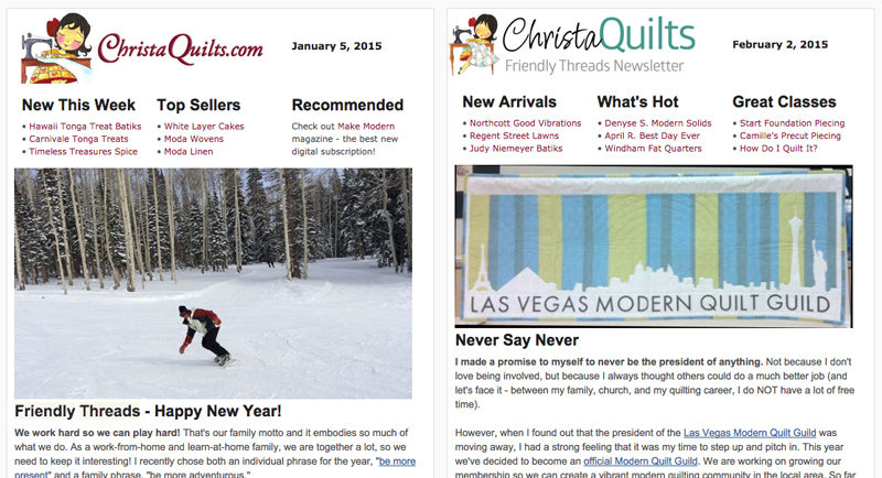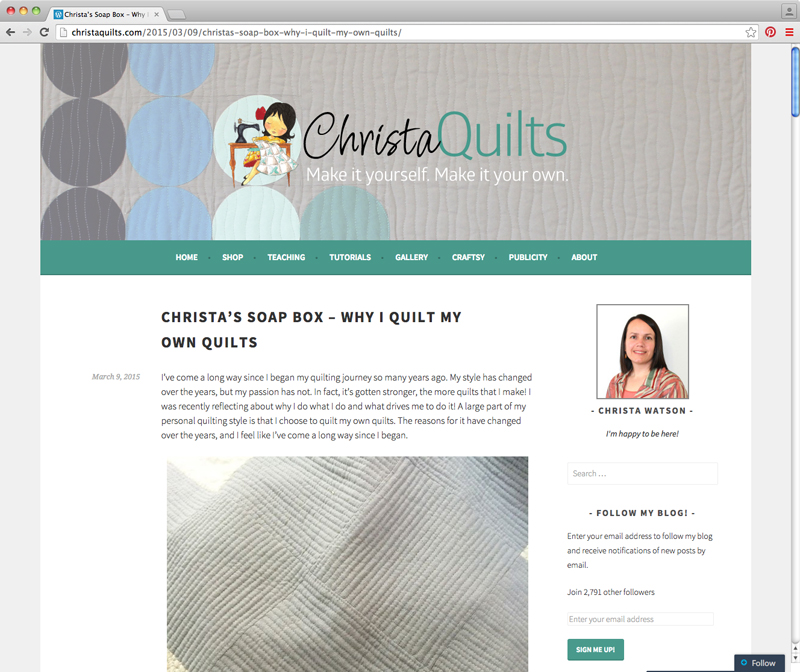 When I started with Christa, she already had a successful business going, with a busy shop, active social media followers and this awesome blog. Big changes weren’t in order, just a visual update. We are in the process of updating logos throughout social media and other locations online. Her newsletter got a new banner and next up is a redesign of her quilt patterns.