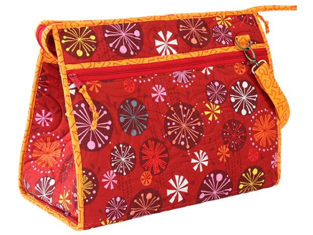 This functional tote is perfect for organizing your sewing notions on the go. I love how Annie paired up the warm Fandangle prints in red and orange with a touch of gray. It always makes me giddy to see how others combine with my fabrics!!