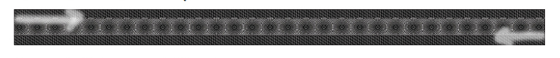If you sew with the black strip on top when sewing both long skinny strips to the center, you will automatically switch sewing directions as indicated by the arrows. You can also achieve the same result if you keep the center strip on top instead, sewing sewing both long seams. The choice is up to you!