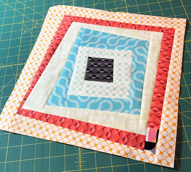 The low volume orange print on the outside of the block above is also used in the partial block below, but now I’m using the “wrong” side instead of the “right side.” All of these fabrics will look great together, no matter which side of the fabric you use!