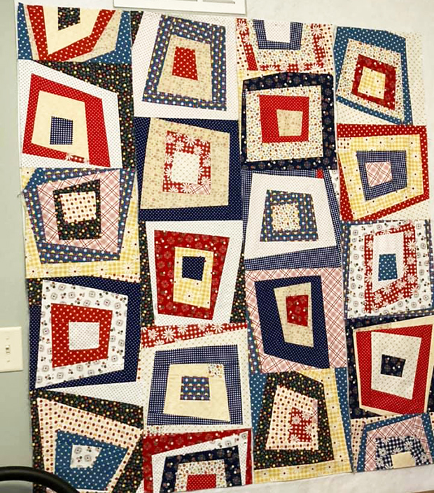 I love the patriotic look chosen by Judi H for her Modern Logs. Classic red, white and blue with a touch of gold, maybe for a yellow ribbon?! She wondered if they were too wonky, but I think not. The beauty of improv is that everyone’s quilt comes out differently!