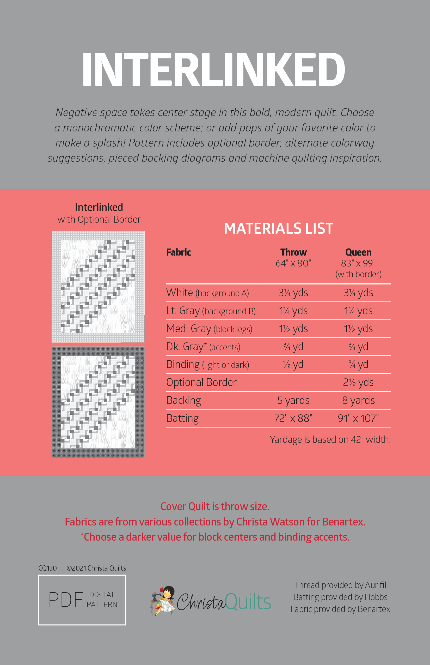 Click here to get the Interlinked PDF Quilt Pattern