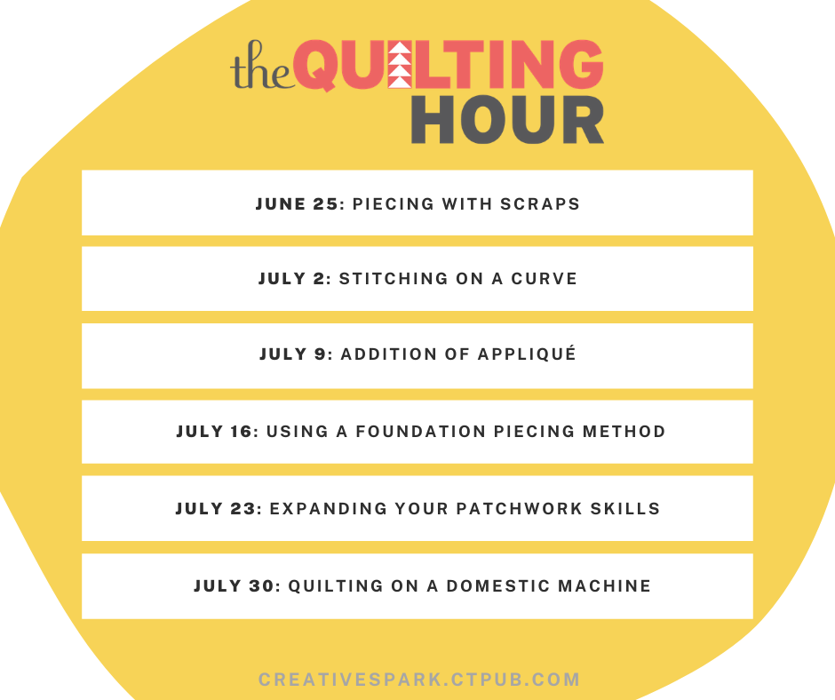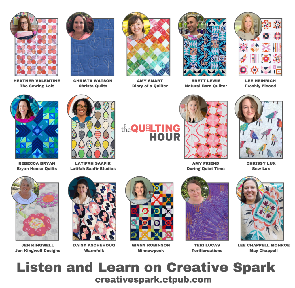 I’m excited to announce I’ll be a guest on a brand new video series called The Quilting Hour! It’s hosted by Lee Chappell Monroe of May Chappell and will be presented by C&T’s Creative Spark. Here’s a quick roundup of who all the guests will be. I can’t wait!!