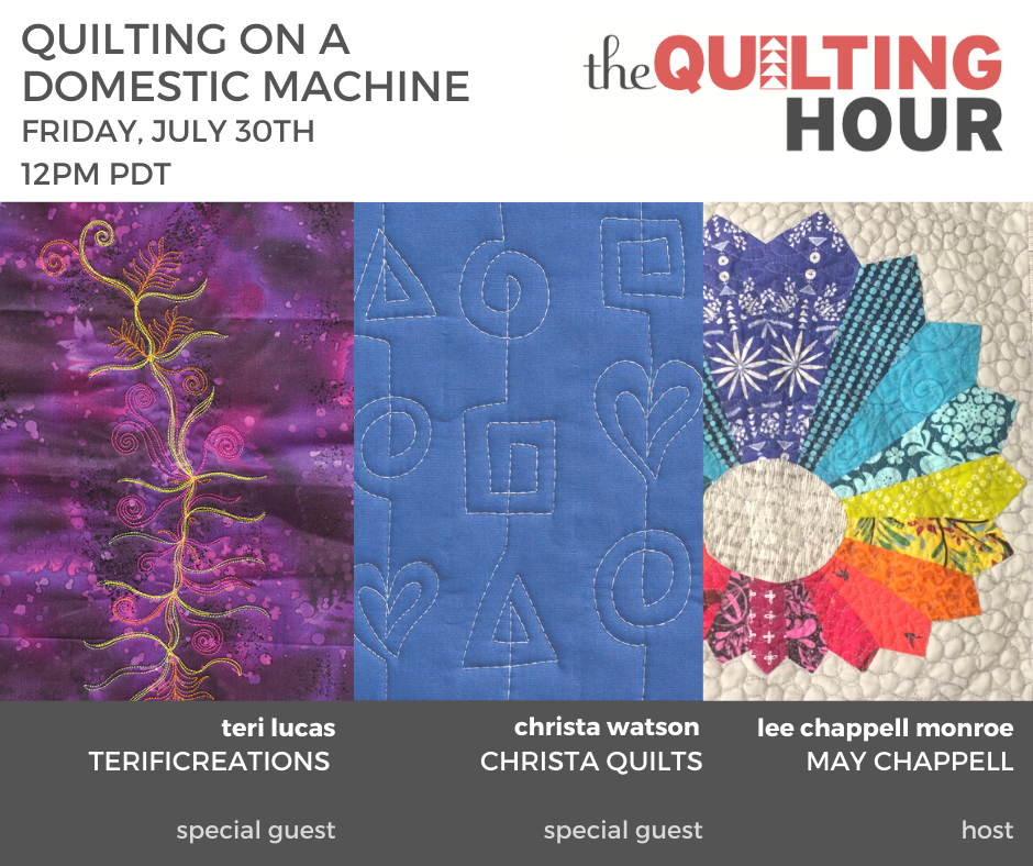 I’m excited that they’ve saved the best for last!! On July 30, I’ll be the featured guest along with Teri Lucas and we will be chatting all things domestic machine quilting!!