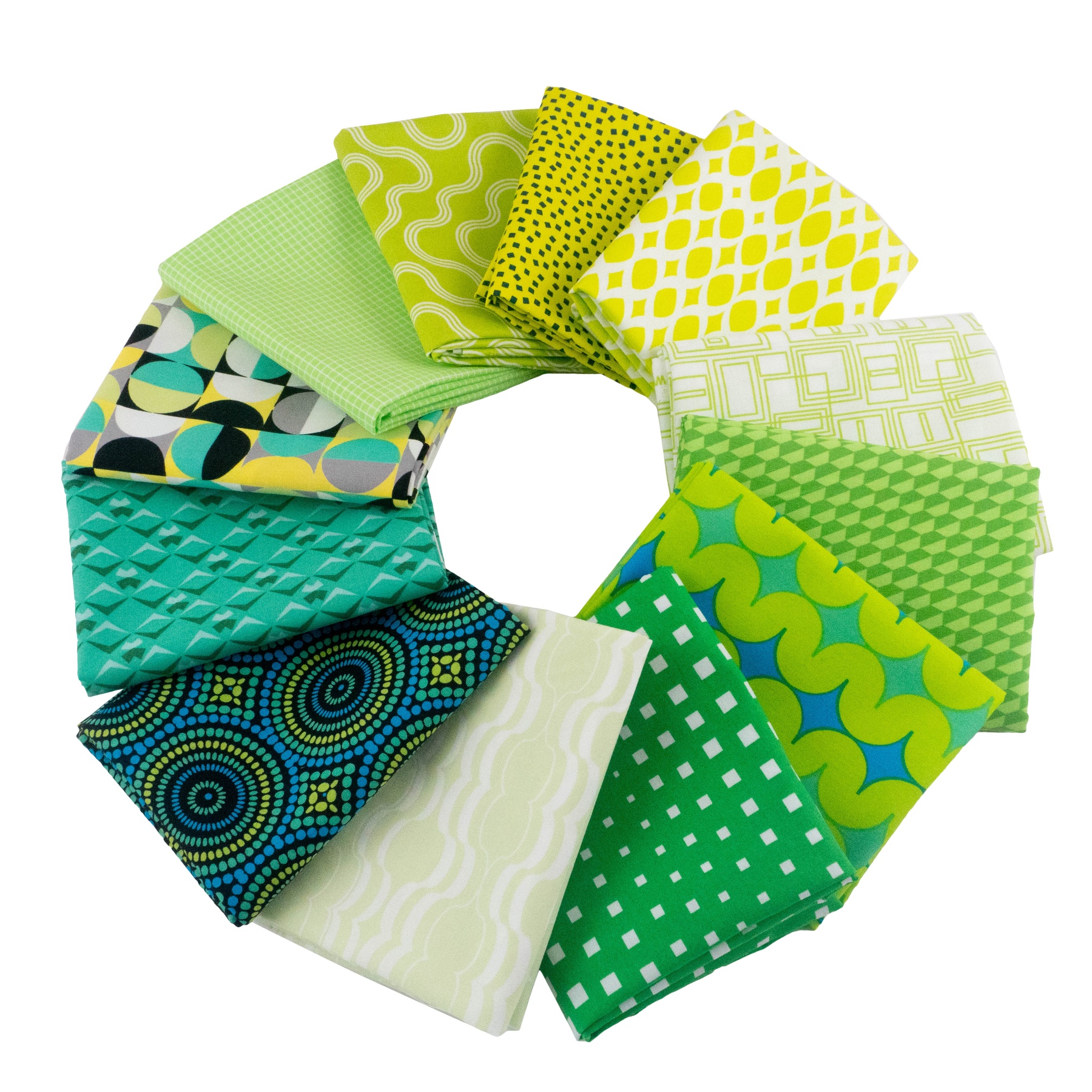 My green color bundle includes fabrics from Geo Pop, Gridwork & Good Vibes