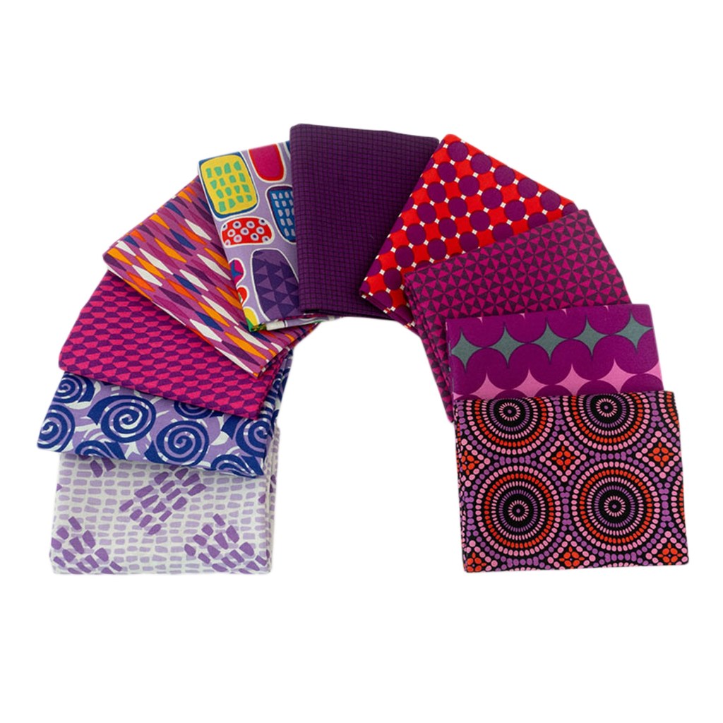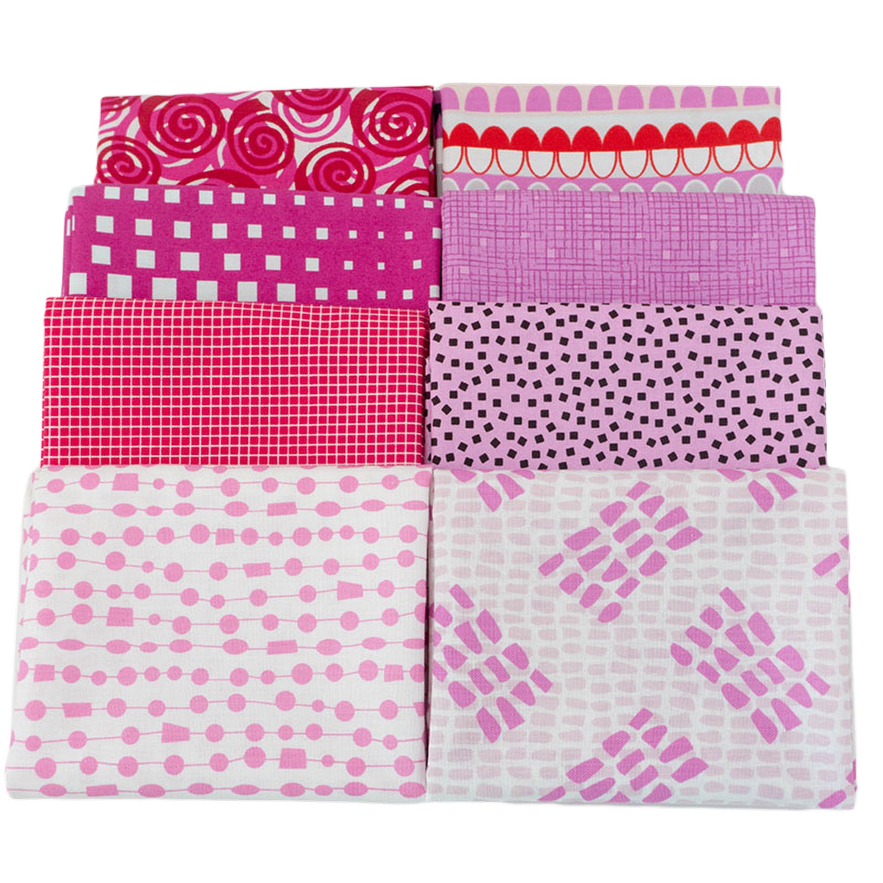 My pink fat quarter bundle includes fabrics from Fandangle, Abstract Garden, Geo Pop & Gridwork