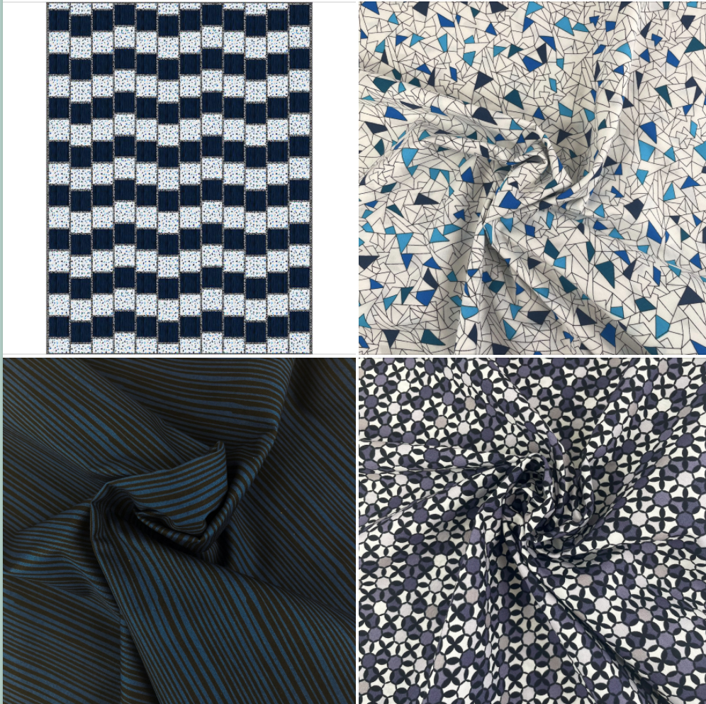 I enjoyed recoloring Optical Illusion Using my Black, White and Bright fabric line. This line can be used all together of course (just like any of my collections). But there’s something magical when you pull just a few prints together in its own color story.