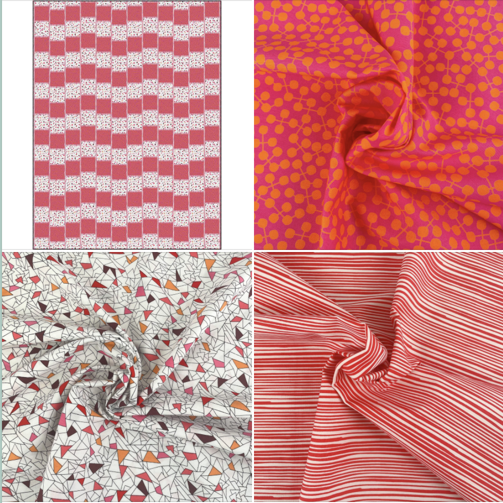 In the red/pink version above, I’ve chosen Branch dots in orange/pink, Crackle in red, and Electric Stripe in red/white. I love how all of these combine together, don’t you?