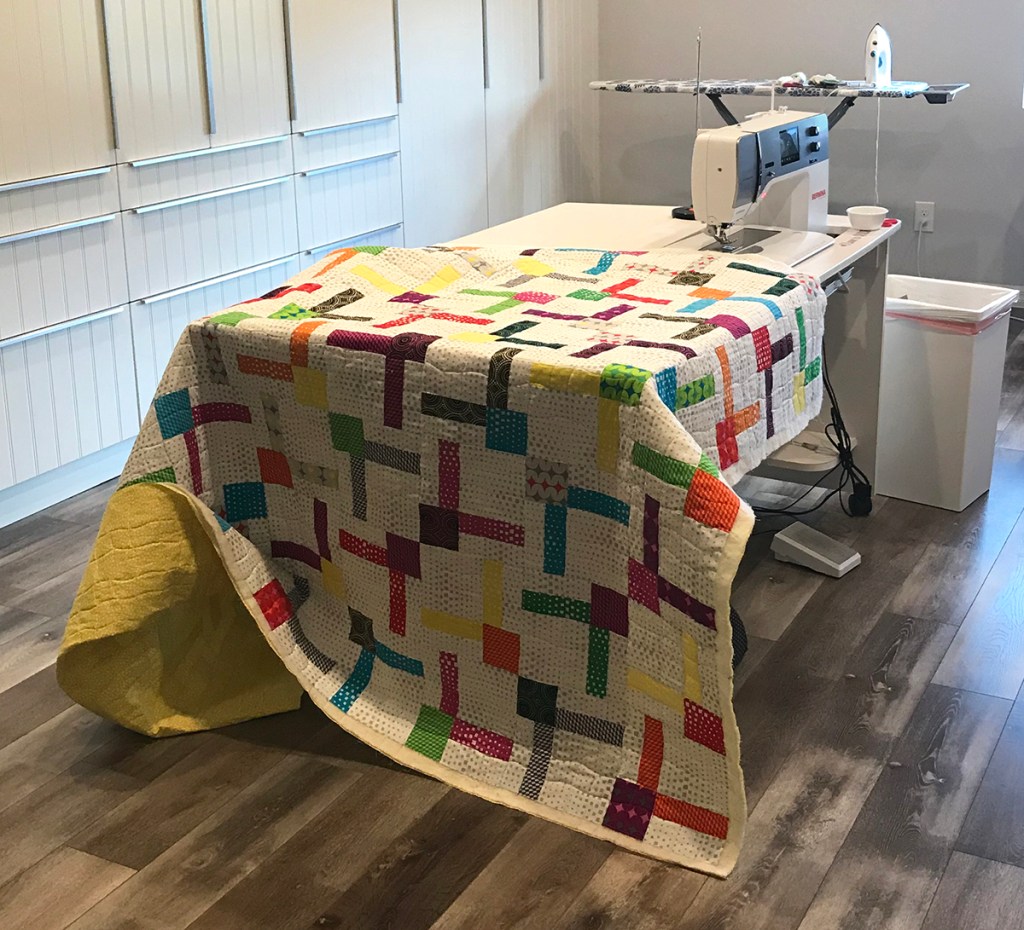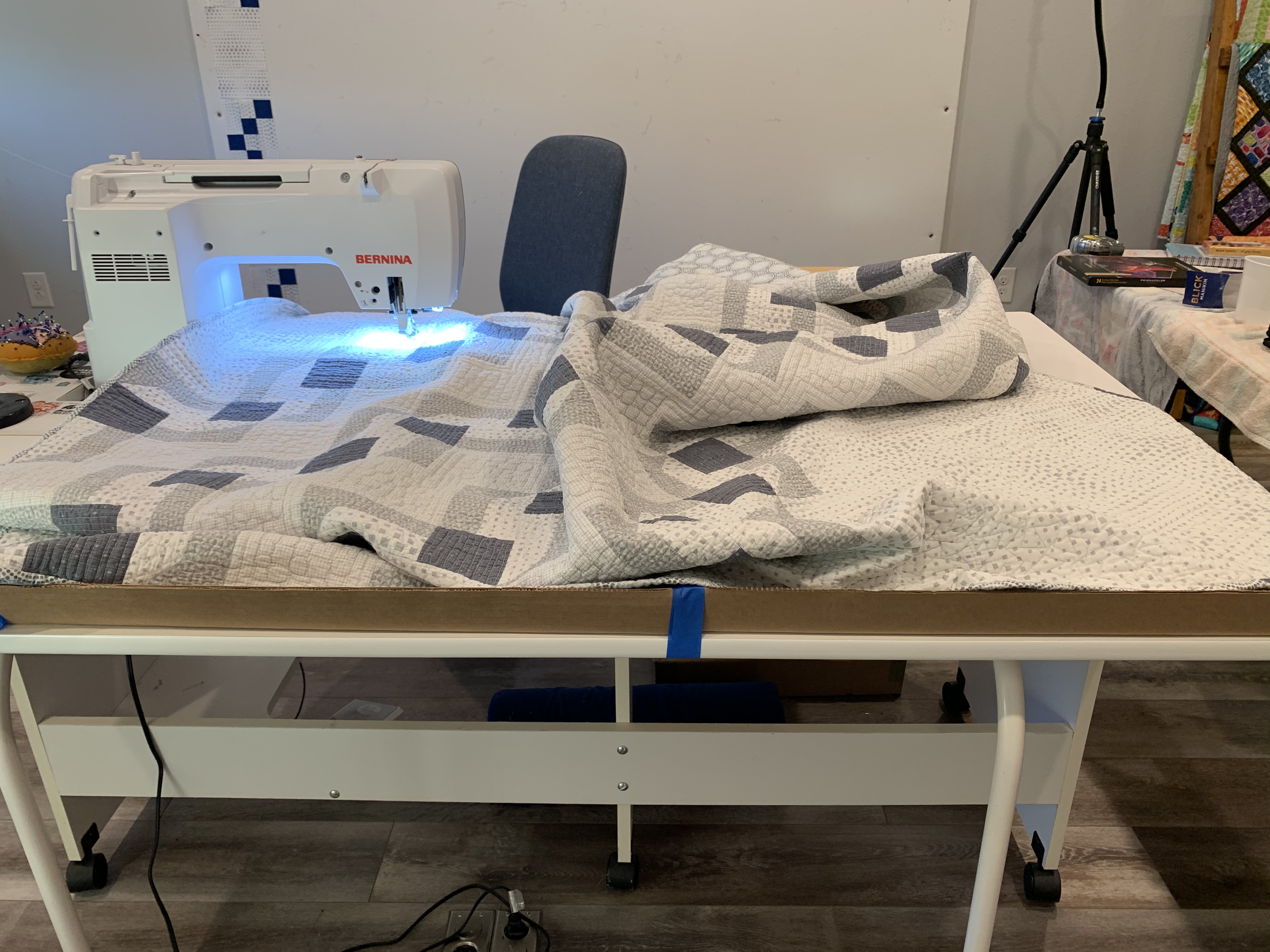Also, whenever I quilted a large quilt, it would fall off the back and side of the table causing a ton of grief while quilting.