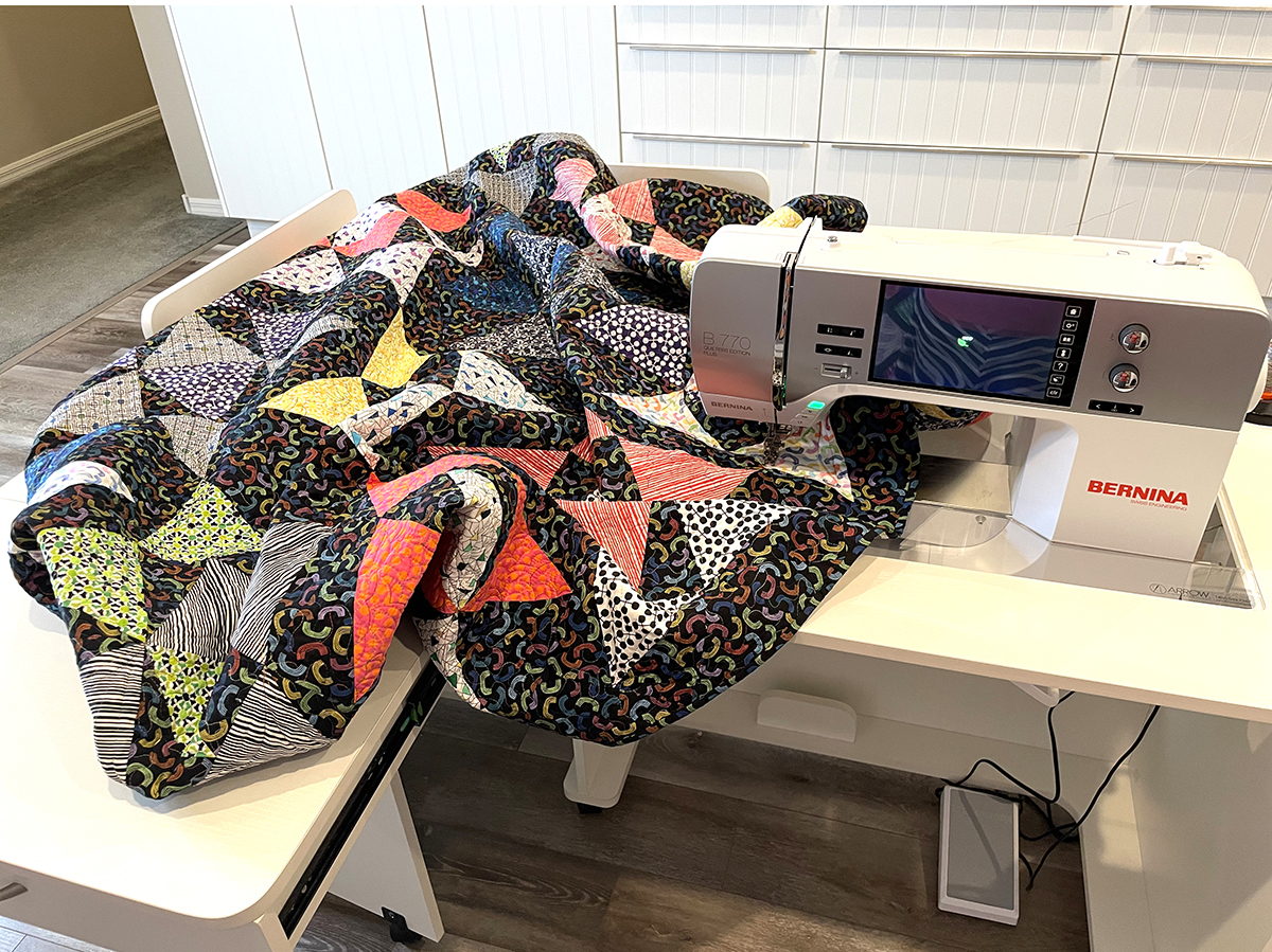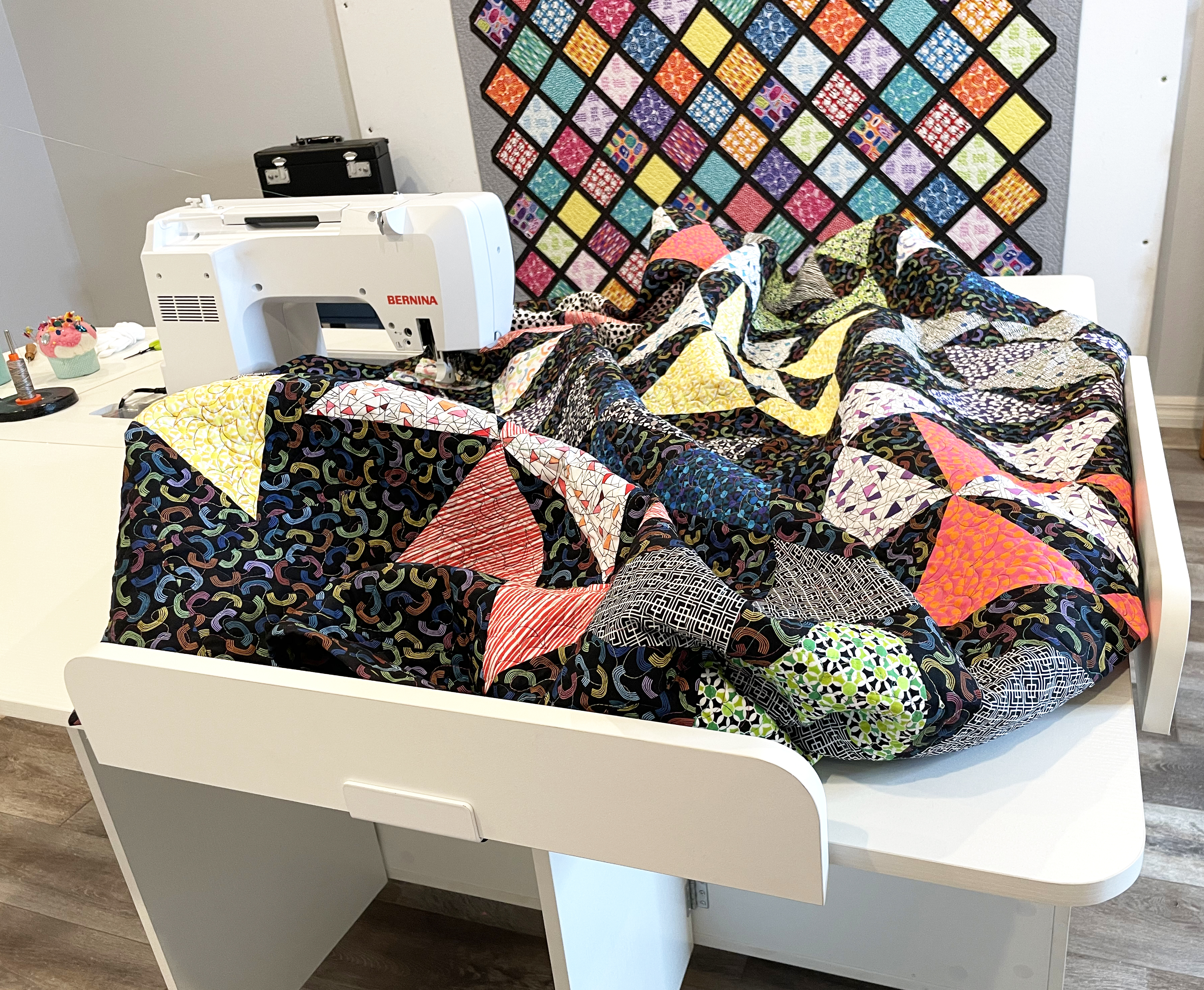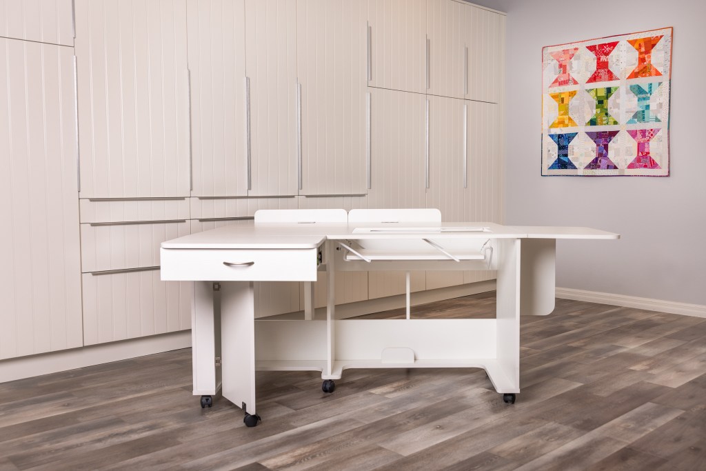 I’ve been sewing on my cabinet since last October, when the first cabinet was sent to me to test and make sure I was happy with it. The answer has been a resounding yes!! I’ve made over a doze quilts on it since then (many in secret…) and I can’t emphasize enough what a joy it’s been to work on.