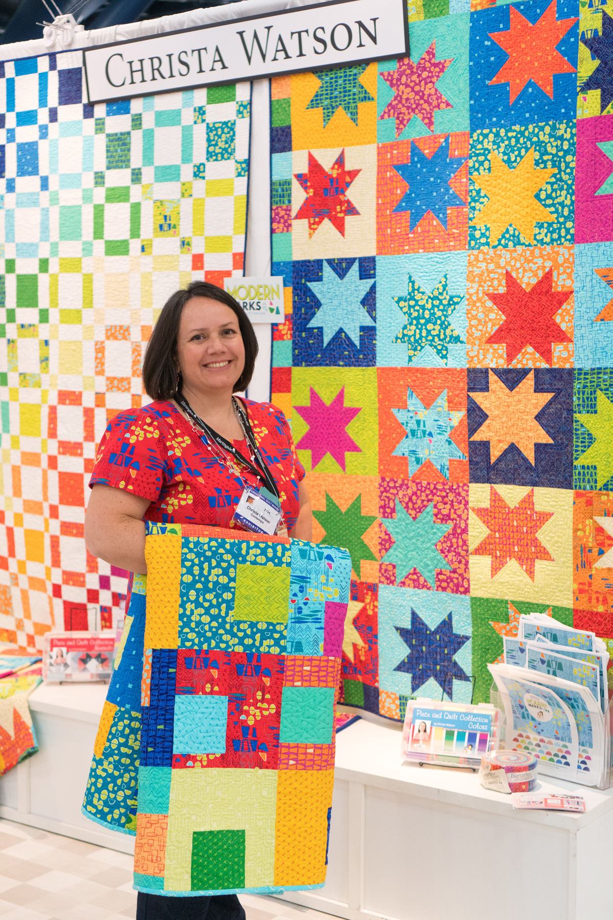 Below is an image of me at Quilt Market back in 2017 when I released my first ever fabric line, Modern Marks. What a thrill it was!! This line is now out of print, so if you have some in your stash, consider it a treasure!