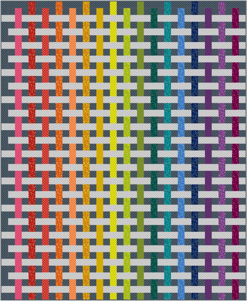 Another big project I’m excited about is hosting another quilt along and that’s where I need your help. I put a call out on social media and wanted to drop it here on the blog, too. I’m deciding between 2 quilts I want to make: below is a recolored version of my Color Weave quilt made from Dazzle Dots. See pattern covers above for my 2nd choice of Ticker Tape.