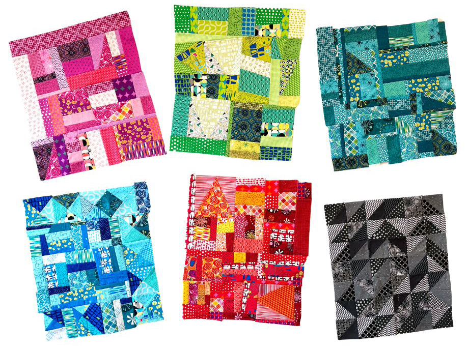 Improv color blocks made from scraps of my fabric collections over the last few years.