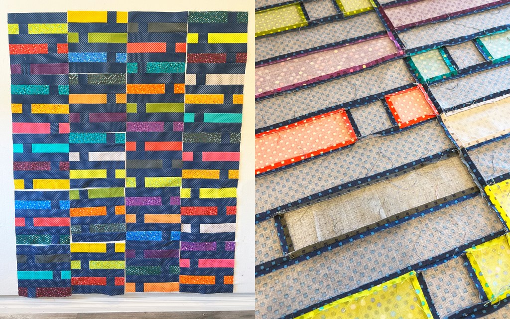 This can be a design wall, the bed, or even the floor! But laying them out and then taking a picture of the order will help speed up the row assembly.