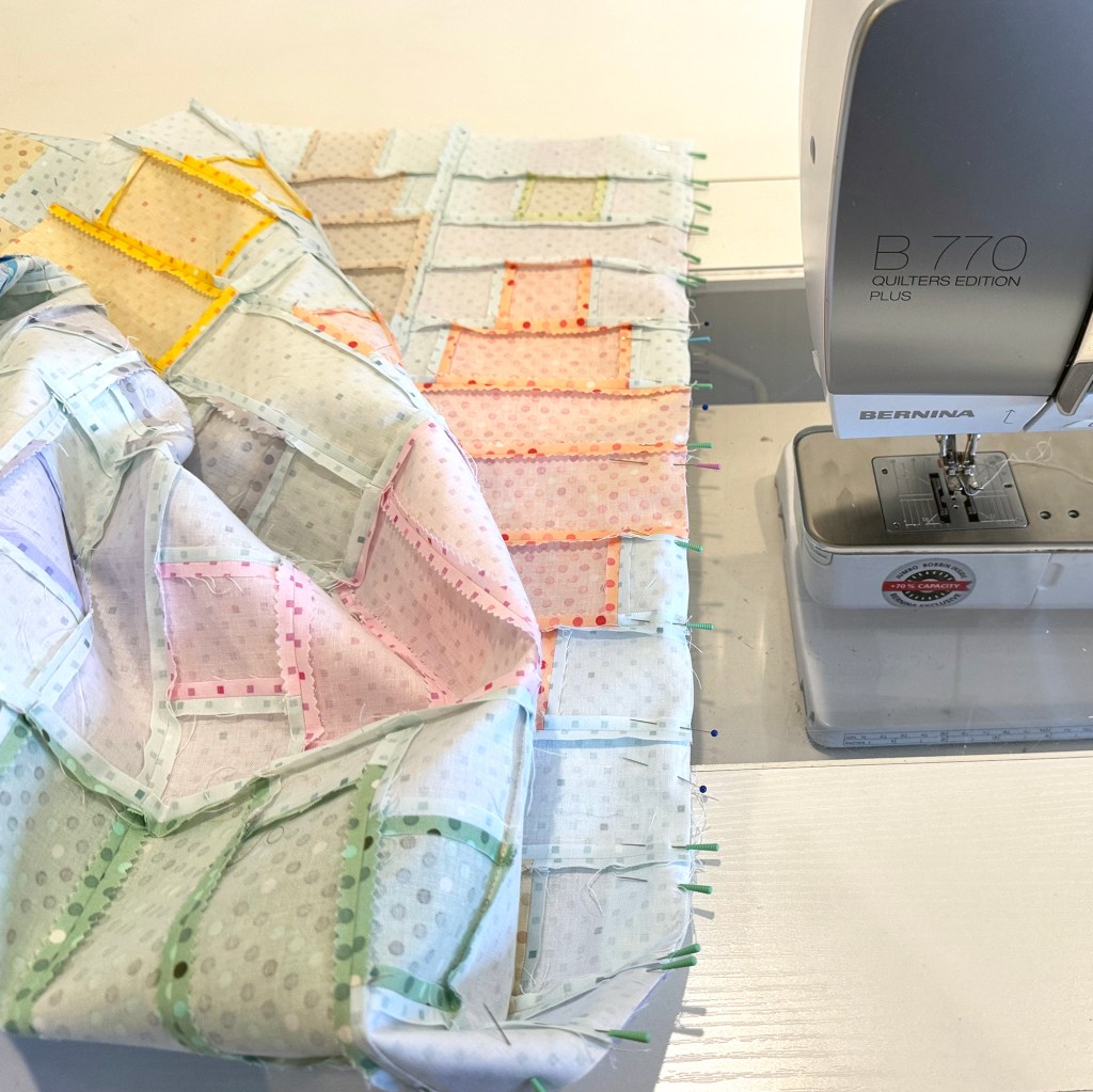 As you can sew I prefer to press all my seams open. This ensures flat blocks, flat rows, and a very flat quilt top which will make machine quilting so much easier! I sew with a short stitch length (2.0) so that nothing comes apart while handling.
