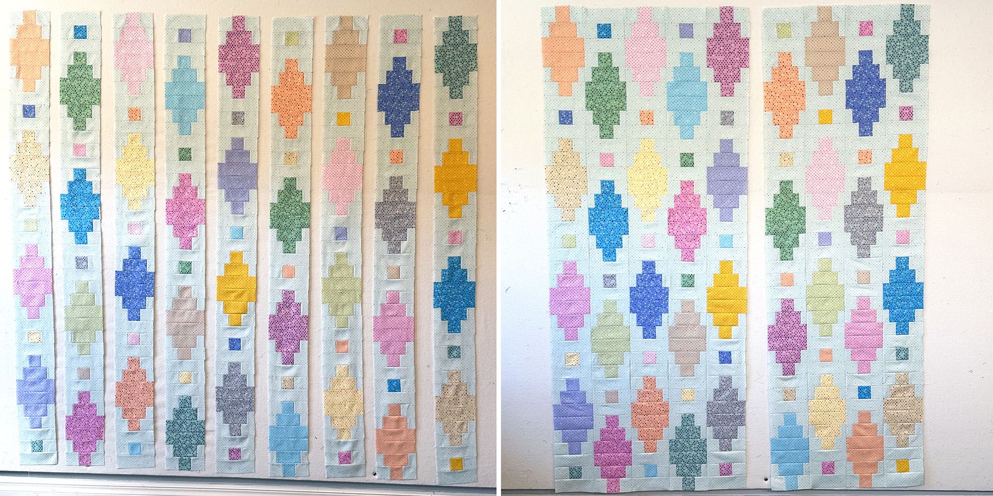 How are your Beaded Lanterns quilt blocks coming along? It’s time to sew them together to create the quilt top! If you are just now finding the quilt along, be sure to grab the Beaded Lanterns free quilt pattern to join the fun!