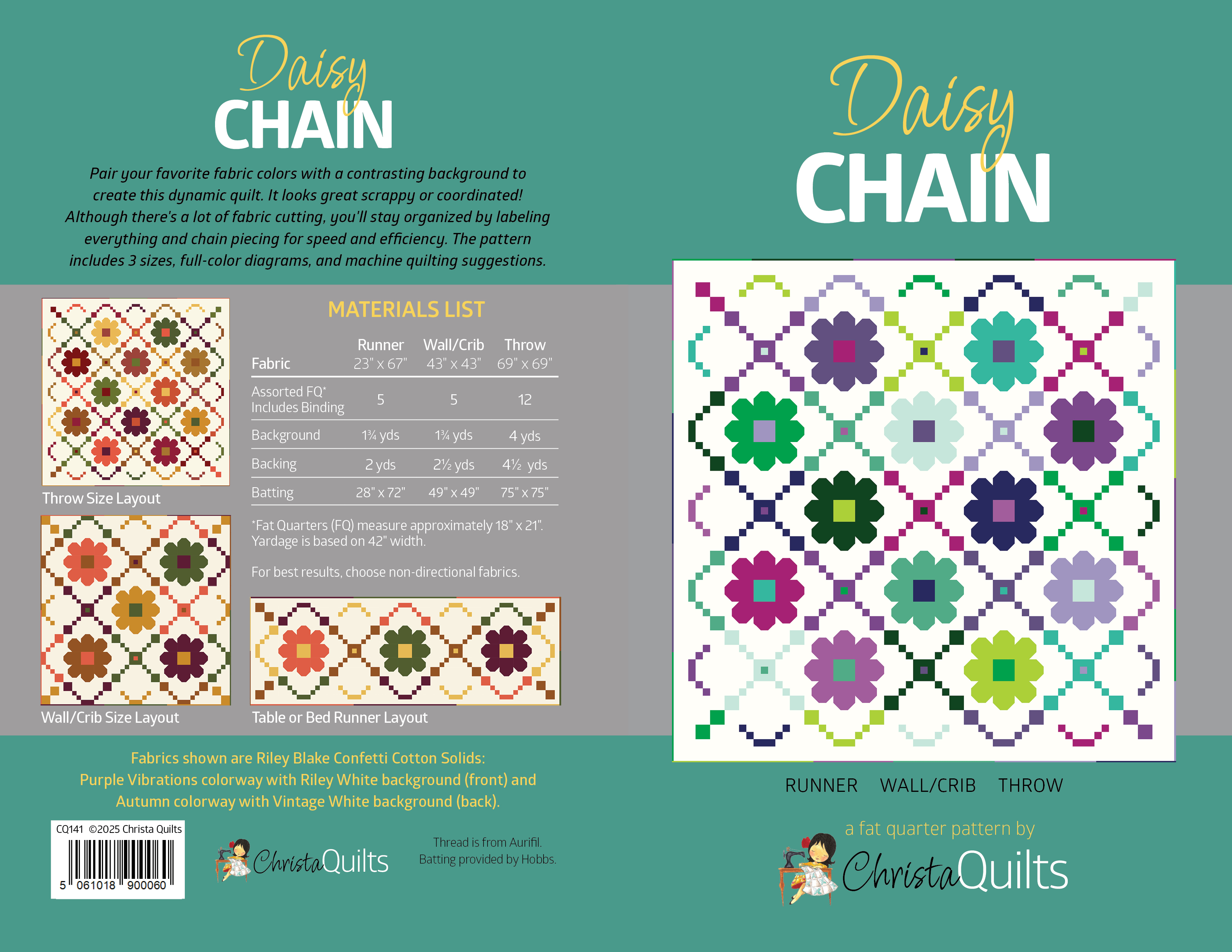 I’m using the Riley Blake Confetti Cotton solids Purple Vibrations FQ Bundle for this version.