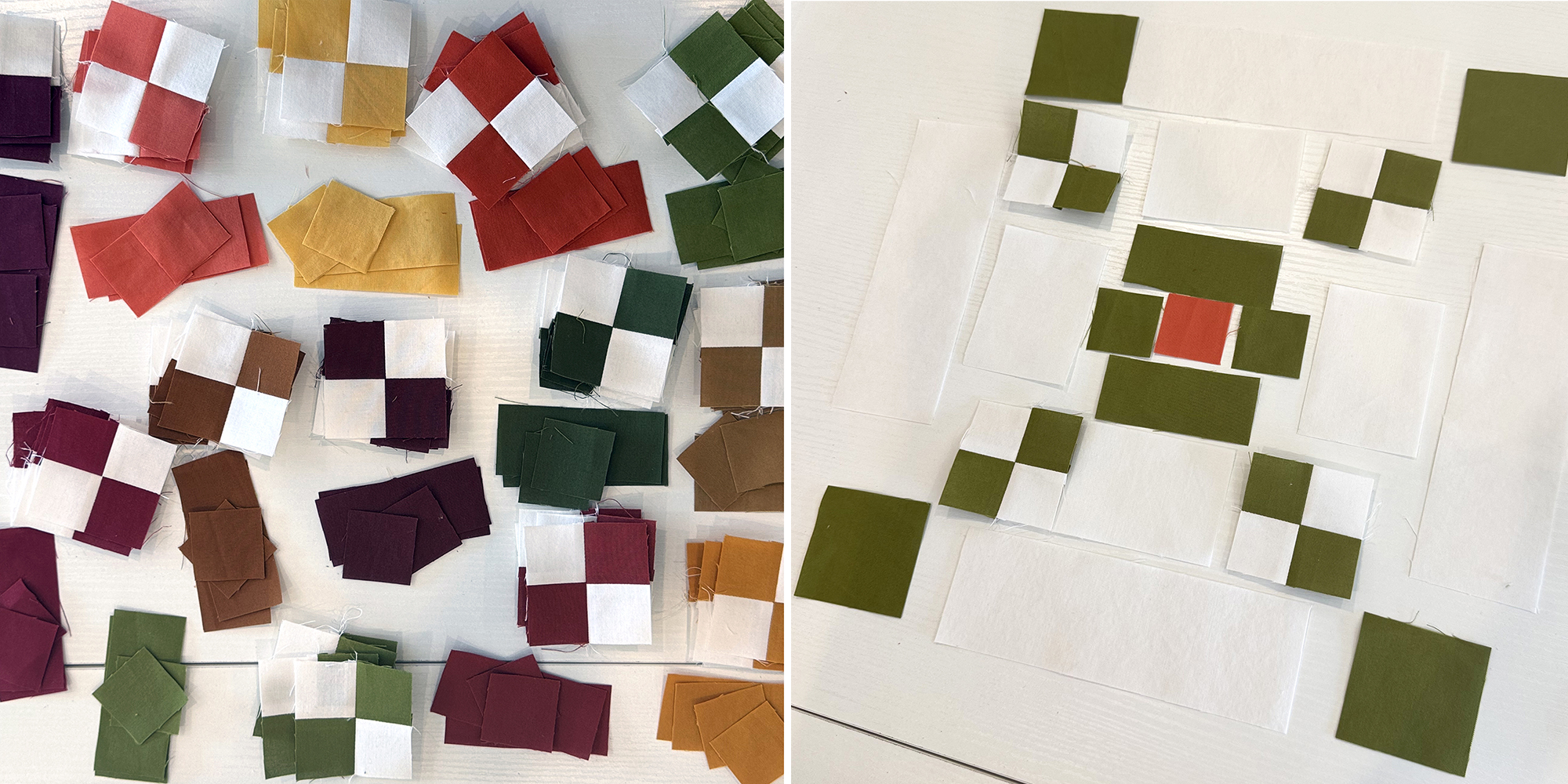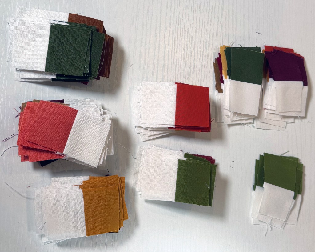 It’s really fun to sew all of these units at once, then stack them together by color.
