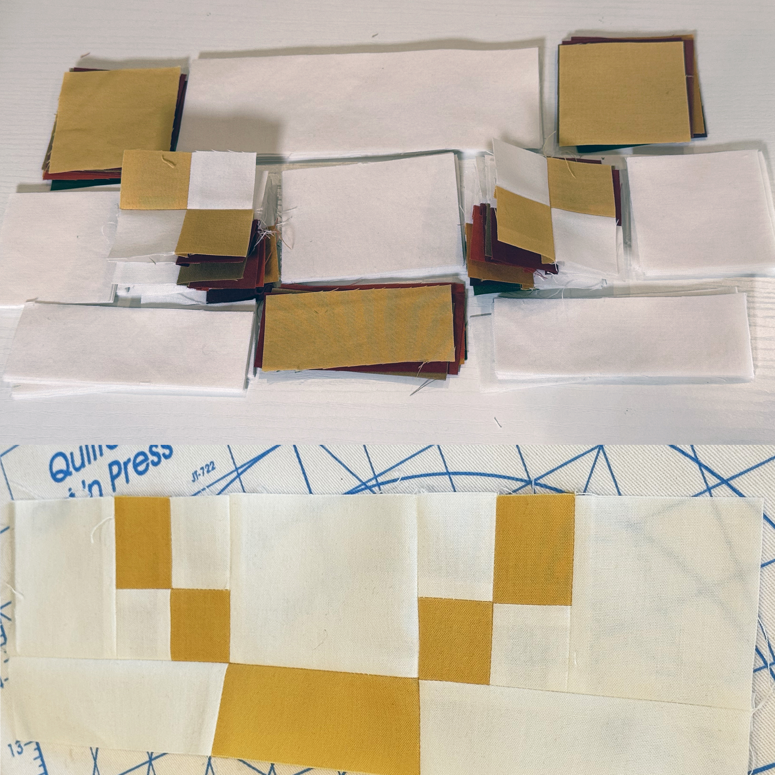 Follow along in the Daisy Chain quilt pattern pages 8-11 as you work on this week’s quilty “homework.” Start by chain piecing your strips that create the small 4-patch units. I’ve given step-by-step diagrams to follow in the pattern so it shouldn’t feel so daunting. Just remember to take it one section at a time!