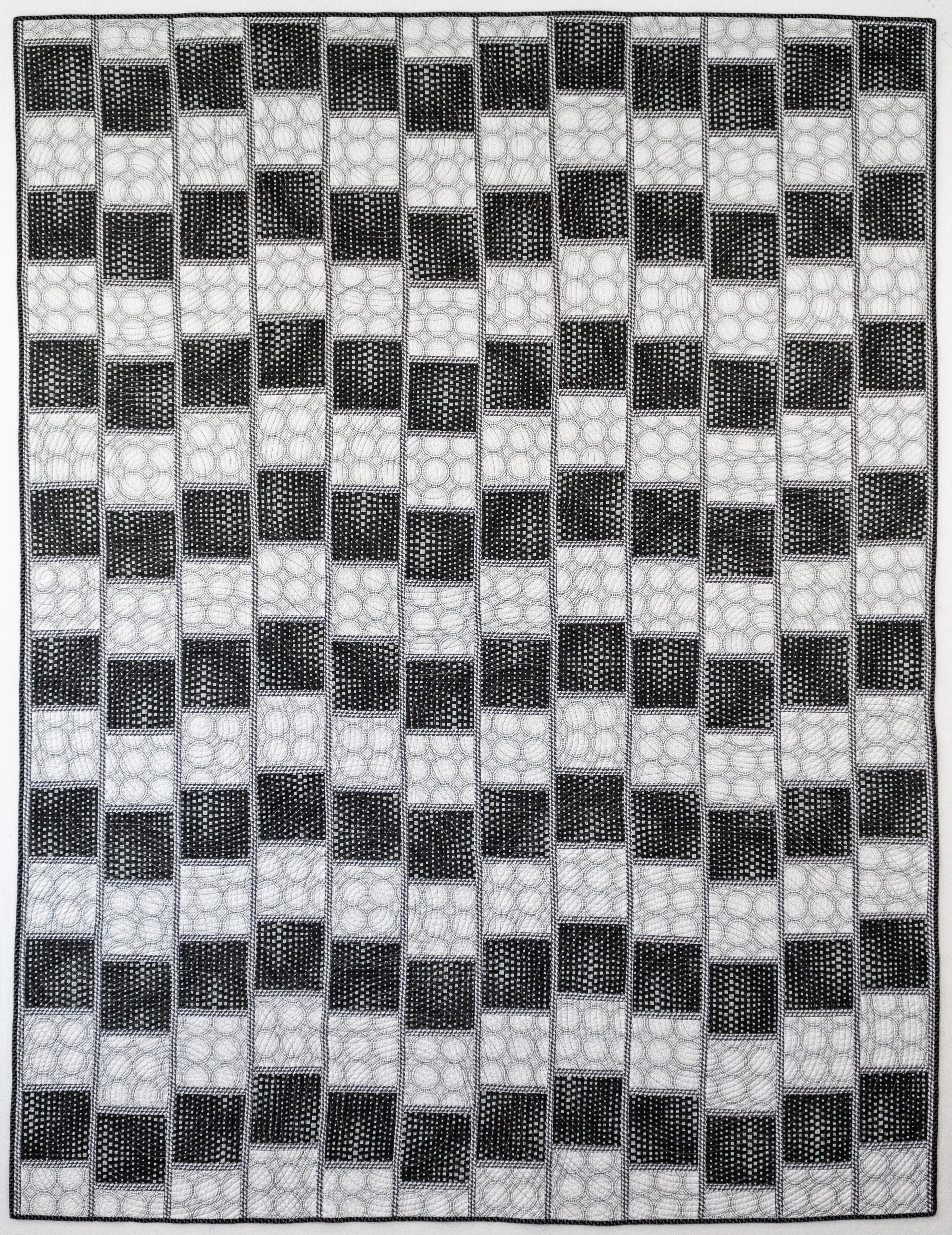 If you want to try quilting decorative spirals on a full-sized quilt, check out the quilt kit for Optical Illusion! The kit includes everything you need to make the B/W version of the quilt with fabrics from one of my fabric collections. Check out the link below: