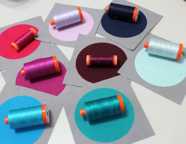 I prefer to piece and quilt all of my quilts with Aurifil, 50 weight 100% cotton thread. It’s thin, yet strong and comes in a wide variety of colors. Because it’s cotton, it won’t make my quilts stiff when I quilt them heavily. And I can use up the leftover bobbins when piecing my next quilt!