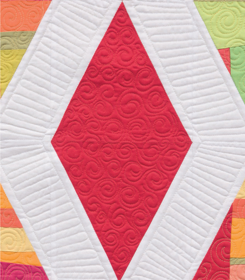 I quilted irregular wavy lines in the bright section of the blocks and “cursive L’s” in the white areas. Each quilt includes step by step instructions plus a detailed quilting plan so you can follow along and get the same look!