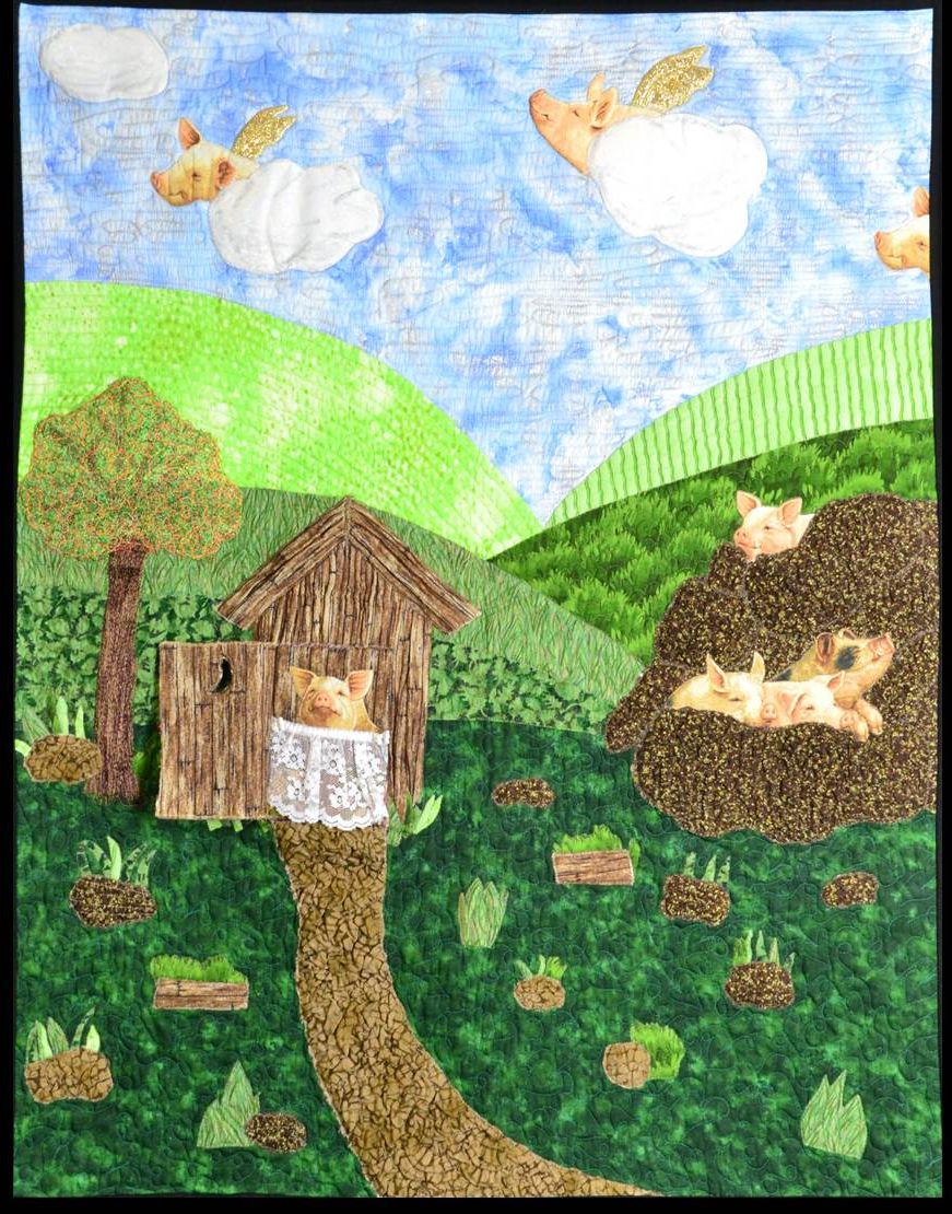 Here it is hanging up in a my guild’s quilt show. Alas, it did not win a ribbon because there were so many other more beautiful quilts in the show. But my sister in-law was happy to receive it and I was thrilled to get in more free-motion machine quilting practice!