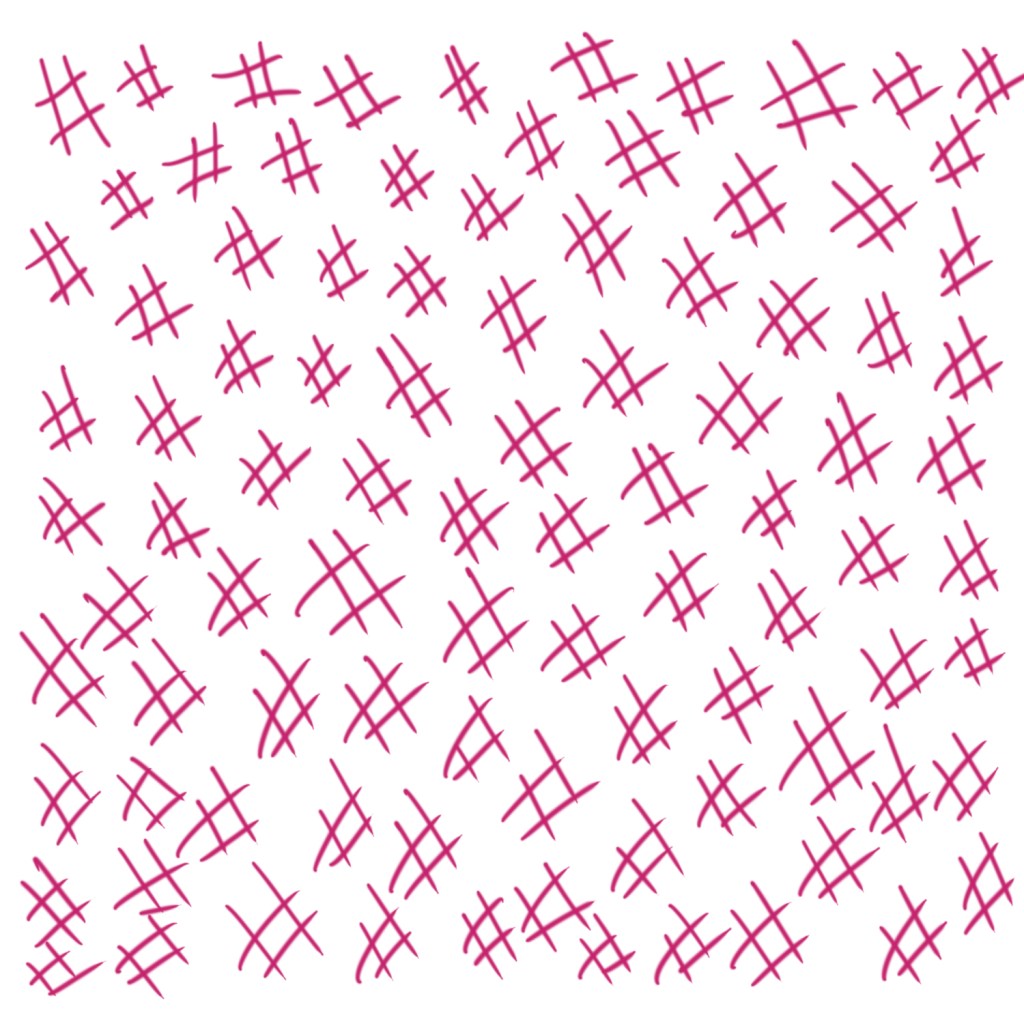Usually I start with very simple line drawings on paper and add more details as I go. Sometimes they’ll evolve into something completely different and other times they’ll stay relatively the same. My Hashtags print was the simplest design but one of my favorites. I literally drew a bunch of pound signs on a white background in photoshop with pink ink. This was my original drawing below, so that’s my actual penmanship, messy marks and all!