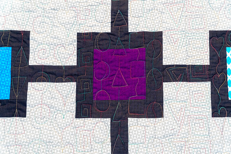 The Stitches print, which is the title name for the whole line, was very straightforward to create. I started with one of my favorite modern machine quilting designs called “Geo Chains.”