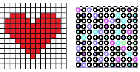 Finally, I had the idea to color in some of the dots and squares to form a secondary design print, sort of like a cross stitch design. But even that took a few tries, too! First I tried to go “cutesy” with a heart motif, but decided that’s not really my look or style. Then I tried randomly coloring in the squares, but that didn’t do much for me either.